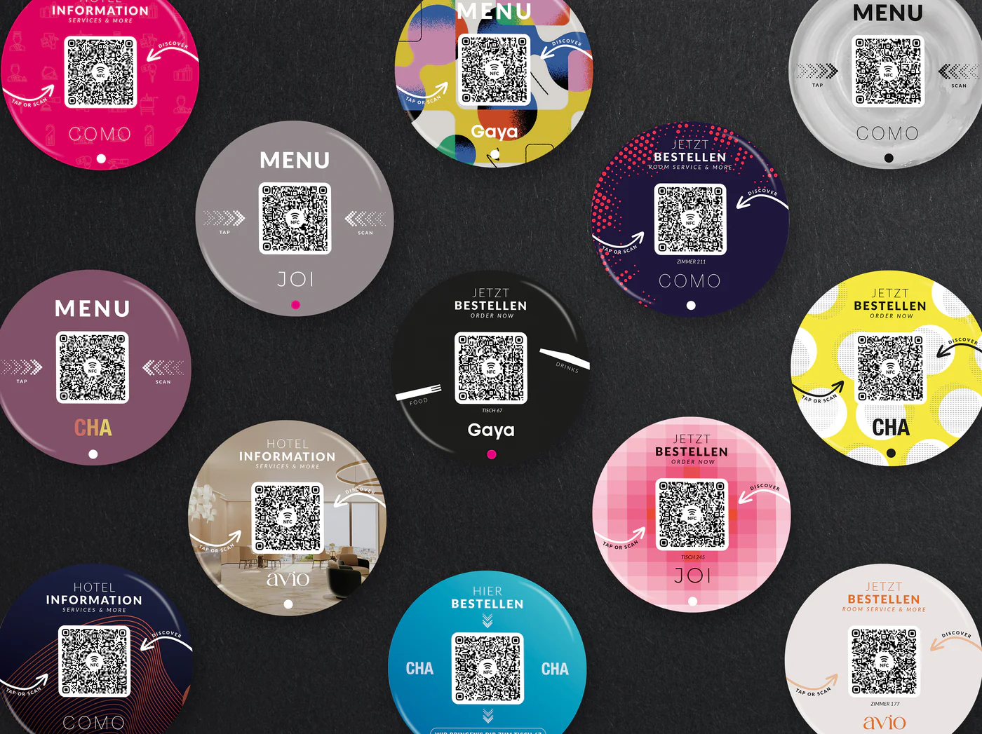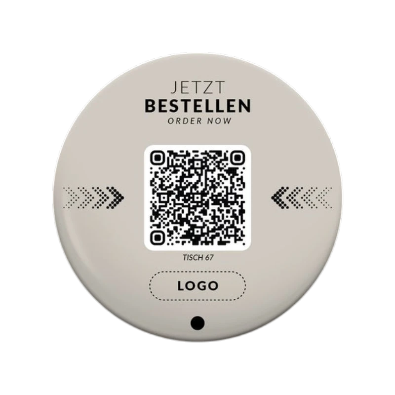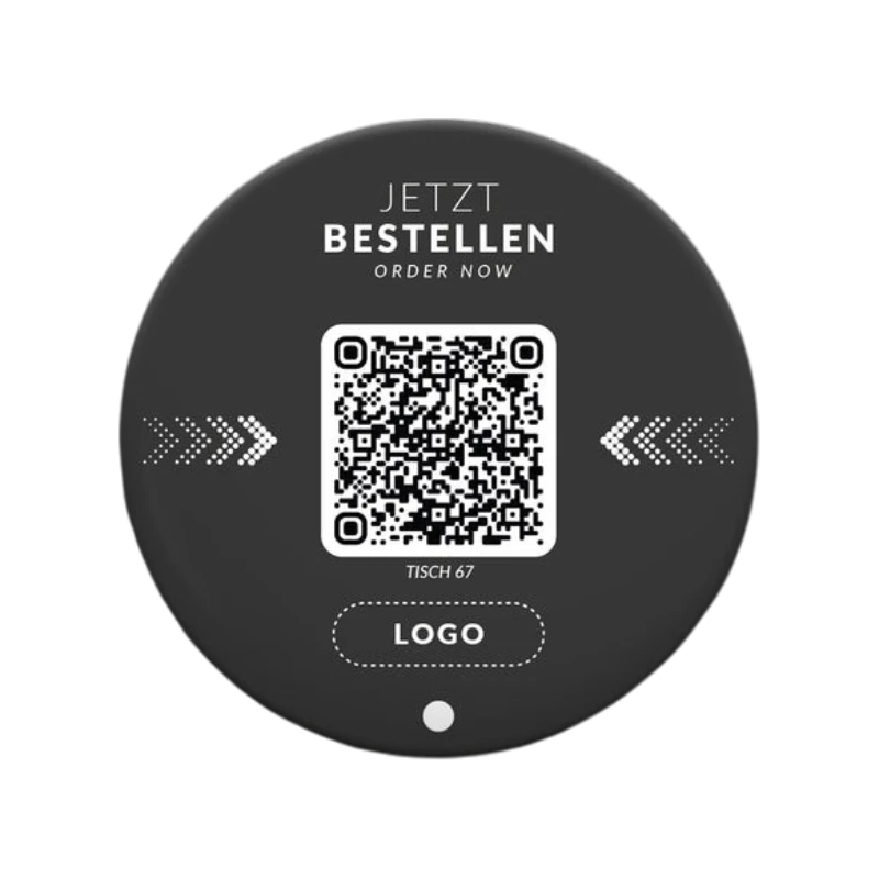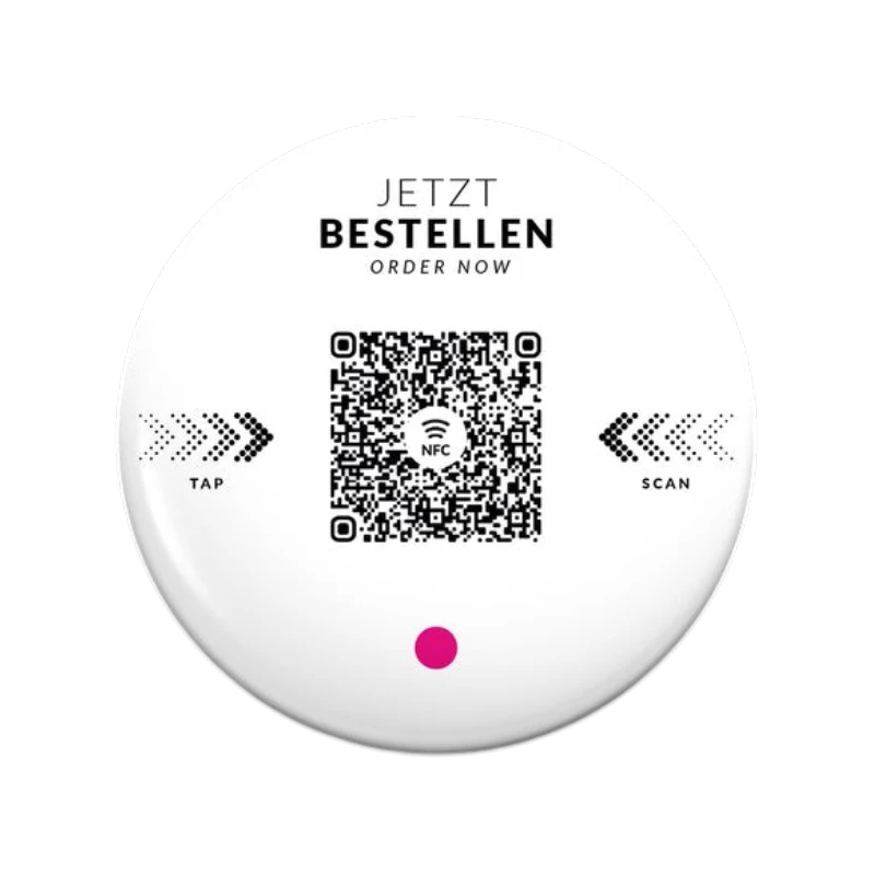 Dieser runde Aufkleber mit 80 mm Durchmesser und glänzender Oberfläche wurde speziell für den professionellen Einsatz in der Gastronomie entwickelt. Als Standarddesign ist er in der Regel schnell verfügbar und sofort einsatzbereit. Der integrierte QR-Code sowie der enthaltene NFC-Chip ermöglichen Gästen einen direkten Zugriff auf Ihr Bestell- und Bezahlsystem. Per Scan oder einfachem Tap mit dem Smartphone öffnet sich der Inhalt sofort und ohne zusätzliche App.