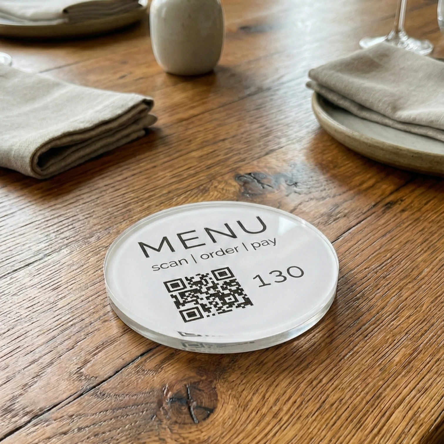 Unsere Acrylglas Pucks eignen sich perfekt für den Innen- und Außenbereich. Sie sind flexibel auf den Tischen platzierbar und können leicht gereinigt werden. Die vollflächige Moosgummi-Unterseite sorgt dafür, dass die Pucks nicht rutschen und das Inlay nicht feucht werden kann.